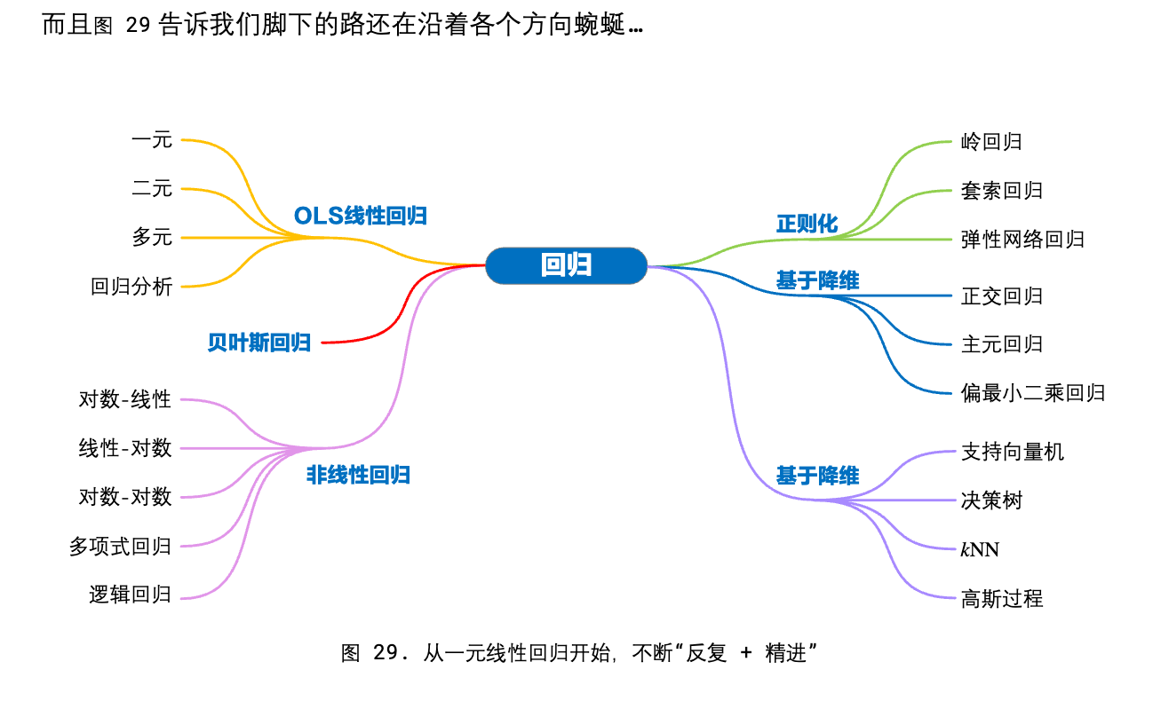 - 如果二元线性回归不满足需求,我们还可以进一步升维到多元线性回归 (multi-variate linear regression)。处理这些高维度的回归模型,线性代数工具从未缺席。