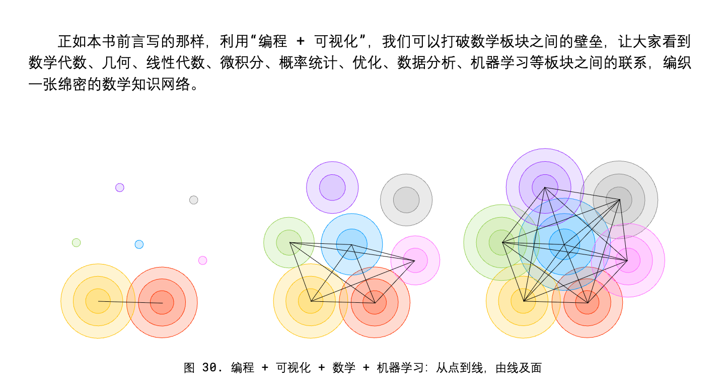 - 本书几乎每一章都至少有一个用 Streamlit 开发的 App,用来展示数学动画、数据分析、机器学习算法。